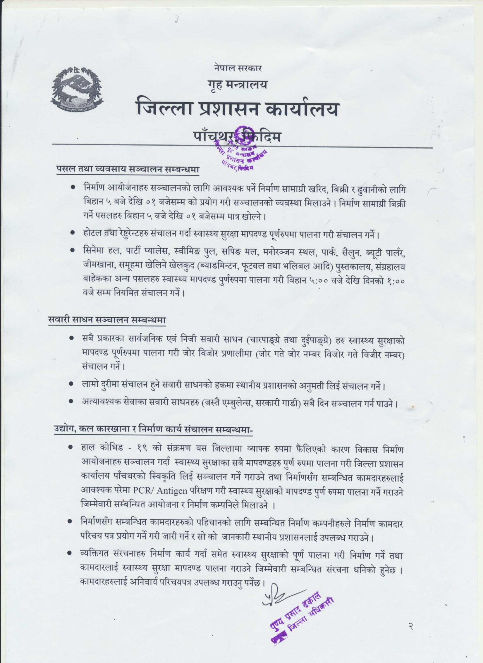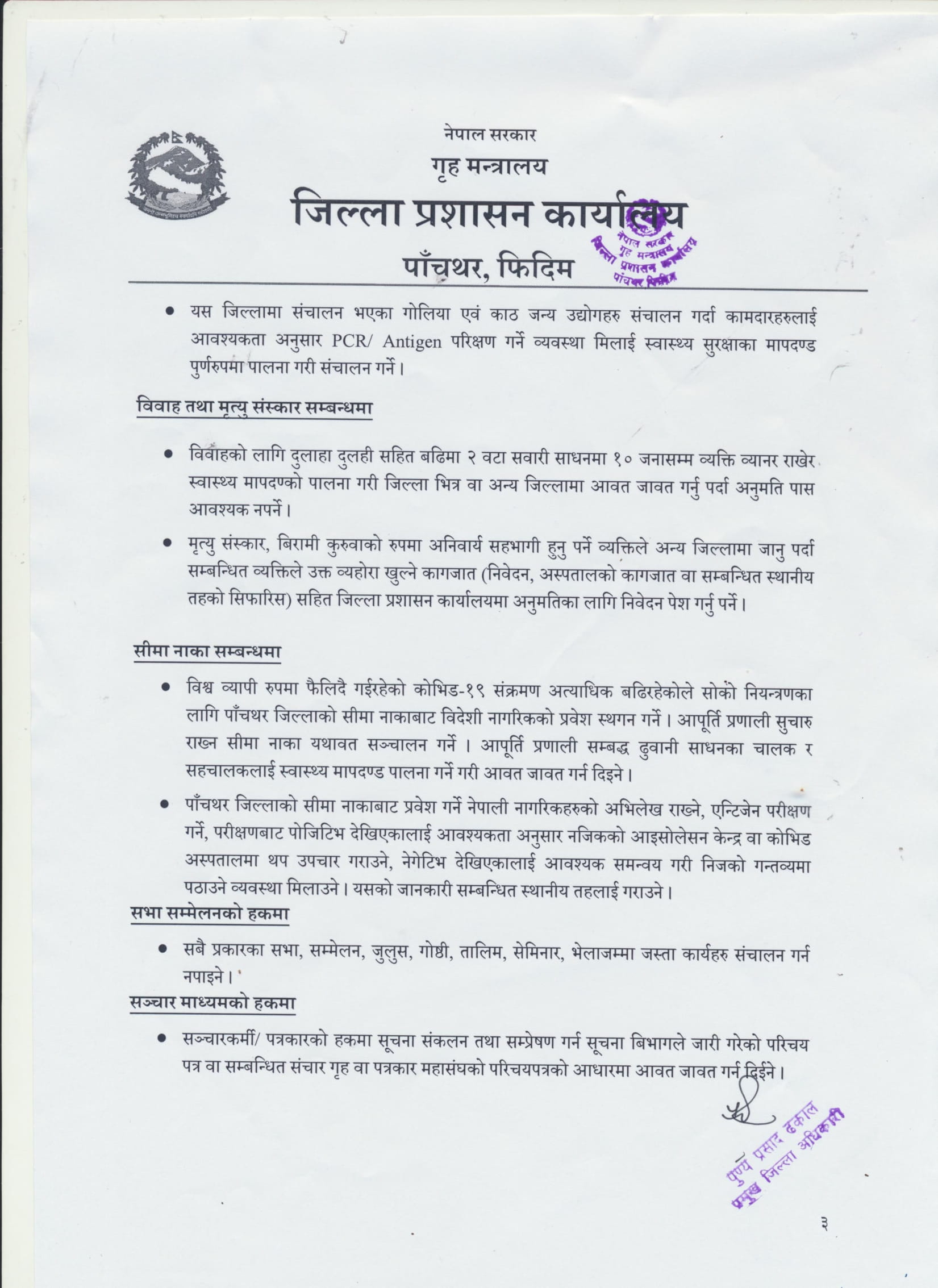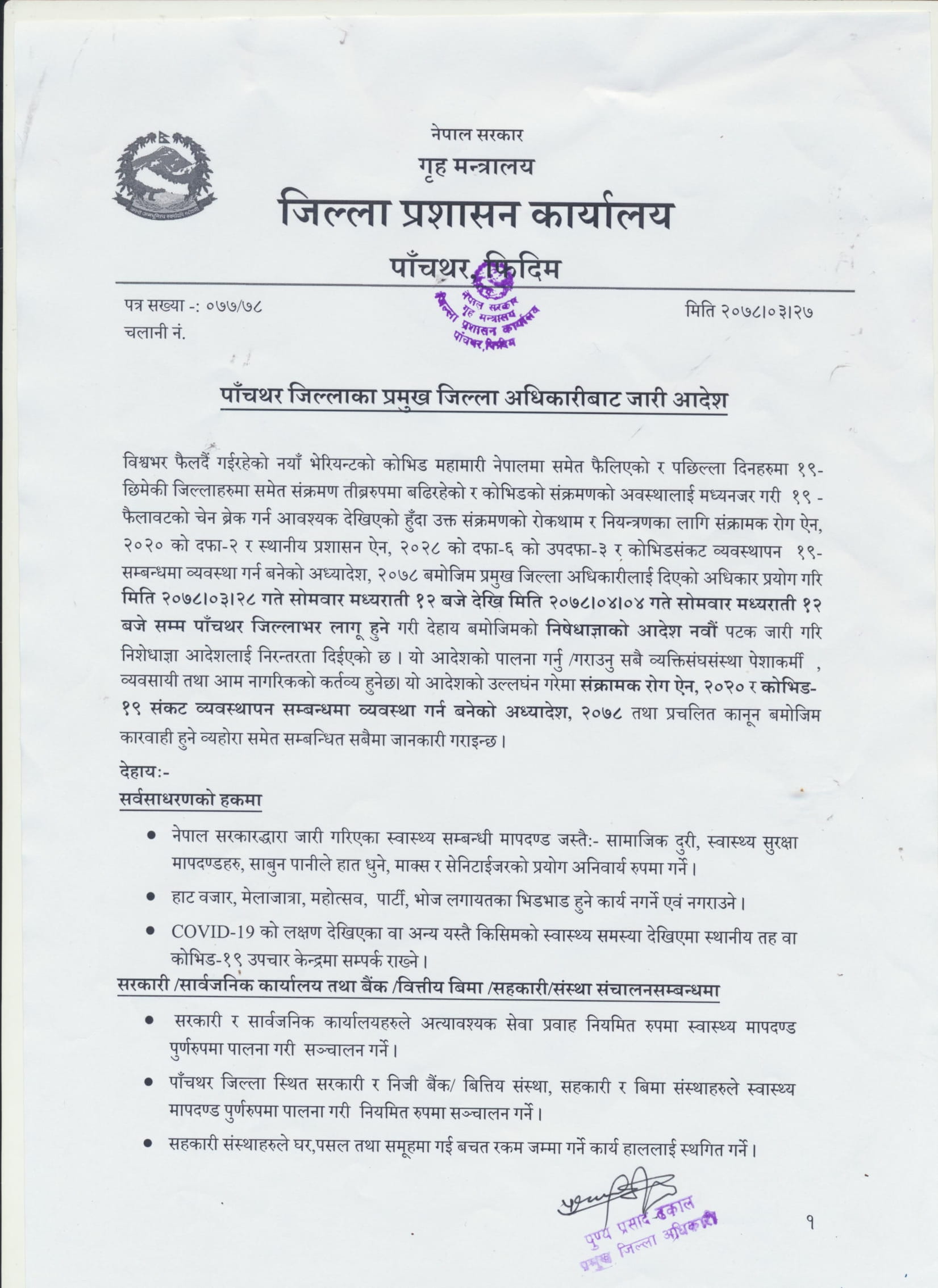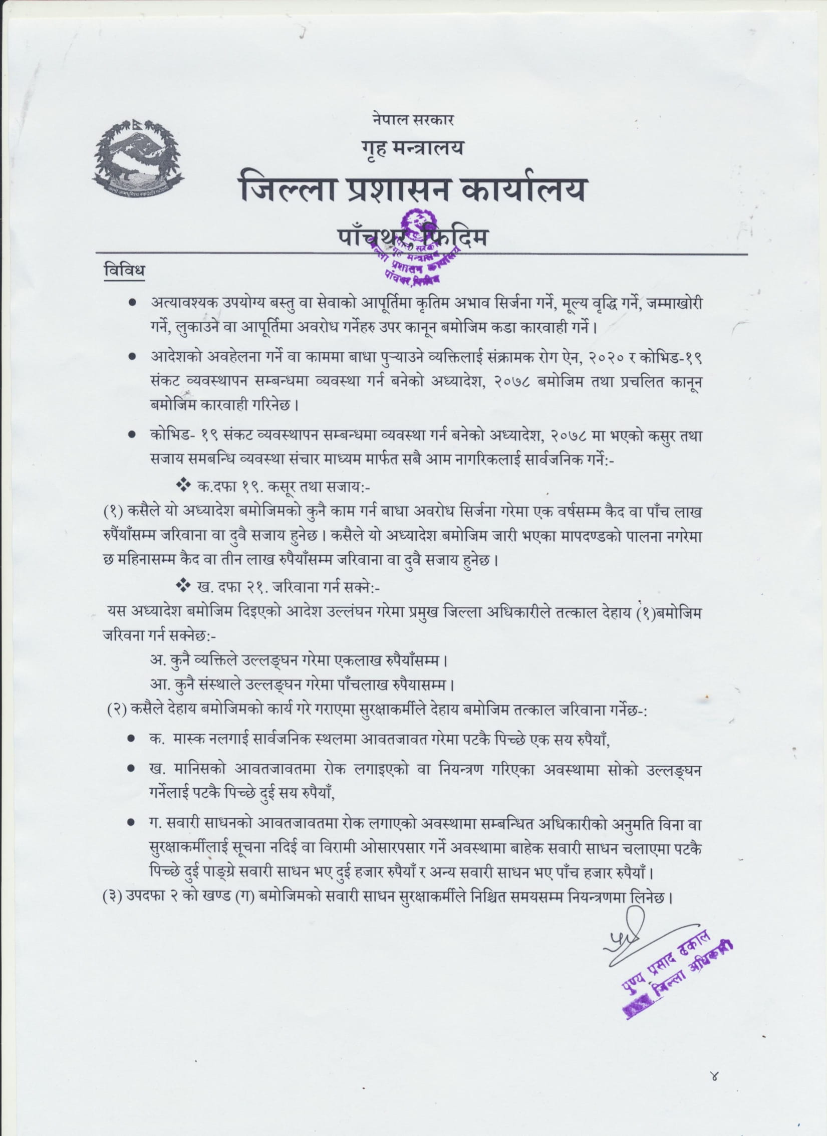 ज्योती भण्डारी ।। पाँचथर २ महिनादेखी जारी निशेधआज्ञा केही खुकुलो बनाइएको छ ।