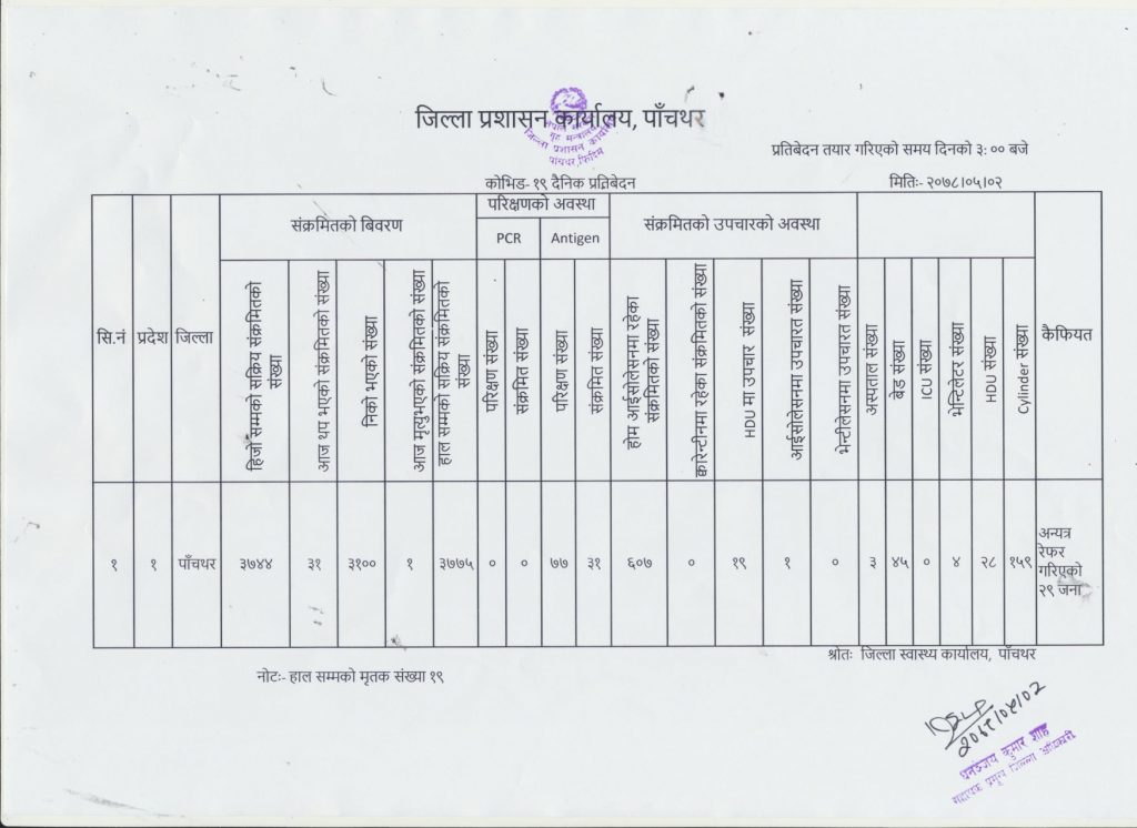 ज्योती भण्डारी ।। पाँचथर जिल्लामा बुधवार ३१ जना कोरोना संक्रमित थपिएका छन् ।