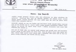 • पत्रकार शिवाकोटिको सुरक्षाको प्रबन्ध मिलाउन प्रेस युनियन पाँचथरको माग