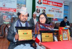 स्व. अमर नेम्वाङ स्मृति साहित्य सम्मानबाट गिरिराज बाँस्कोटा र बिमला तुम्खेवा सम्मानित