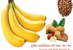 २०७६ मङ्सिर १२ : बदाम, चना र केरा। सस्तो र सरल रुपमा प्राप्त गर्न सकिने यी तीन चिजले कुपोषित बच्चाको स्वास्थ्यमा सुधारात्मक परिर्वतन ल्याउँछ। यी चिजबाट तयार गरिएको आहारले बालबालिकालाई कुपोषित हुनबाट जोगाउनुका साथै शरीरमा हुने लाभदायक जीवाणुको पनि सुरक्षा गर्छ। साथै, बालबालिकाको शारीरिक विकासमा सहयोग पुग्ने गर्छ। ...